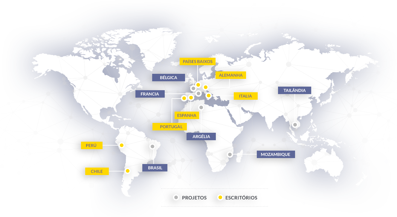 Temos escritórios em Espanha, Alemanha, Chile, Países Baixos, Portugal, Itália e Peru, bem como projectos em 12 países diferentes em 4 continentes: